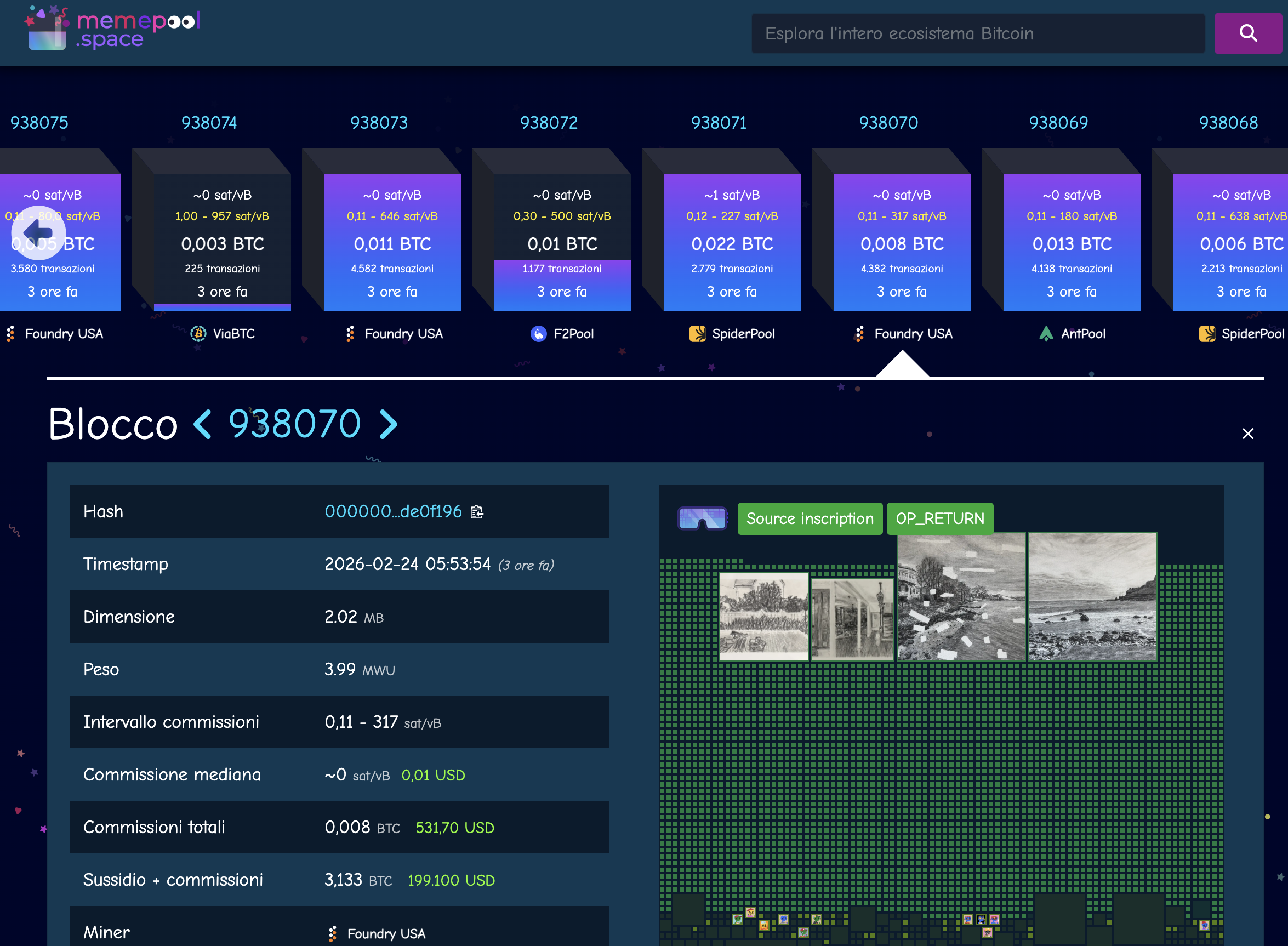 Arriva un fork di mempool.space che consente di vedere direttamente nei blocchi le immagini inscritte presenti nei blocchi: MEMEpool.space