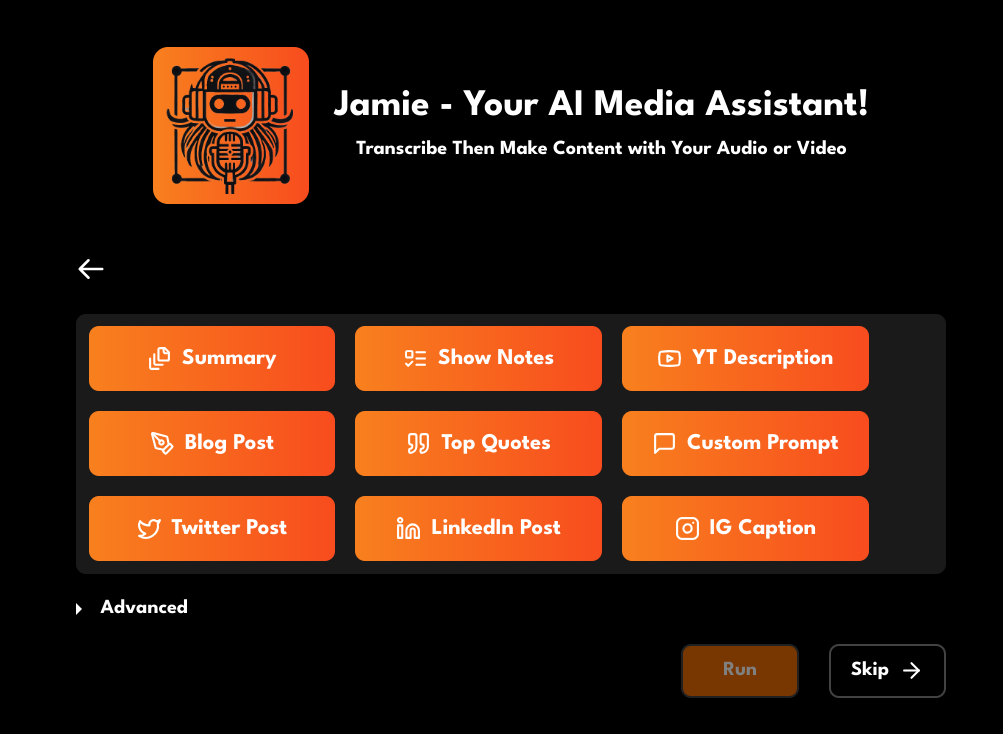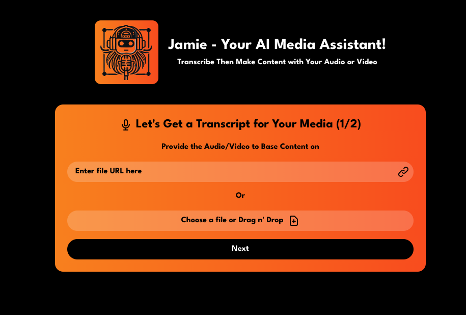 β‘ In 3 clicks, Jamie can take any audio or video file, transcribe it and instantly churn out AI generated content like blog posts, summaries or social media captions!