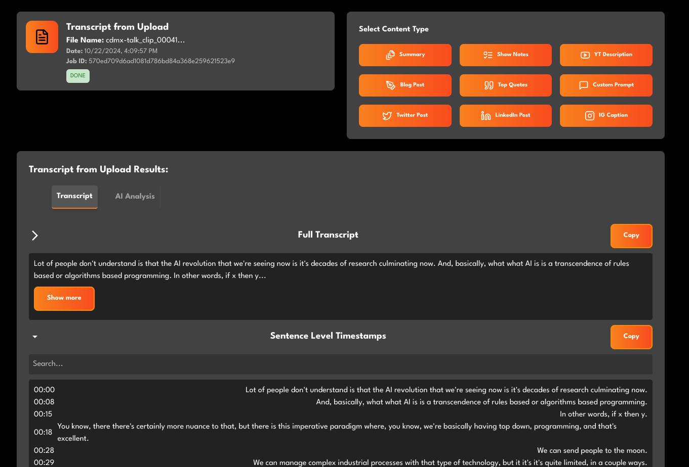 We are moving toward a paradigm of making it easier to reuse content and combine them with other tools. With the Blog Post job shown above, I can always go back to the original transcript and quickly make other content like social media posts, summaries or even translations with follow up prompts.