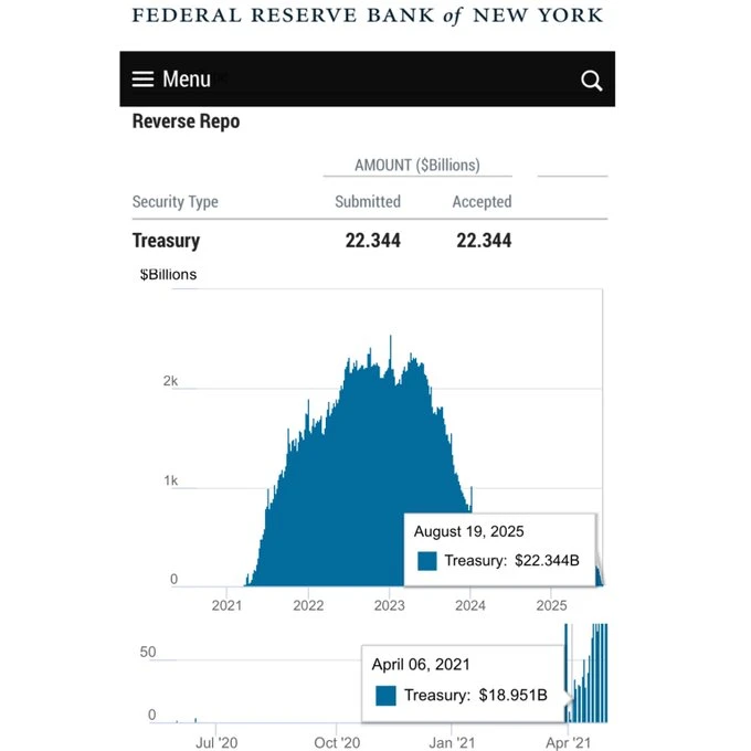 đđ˝Federal Reserve Reverse Repo drops to the lowest level in 1,596 days. What happens tomorrow?