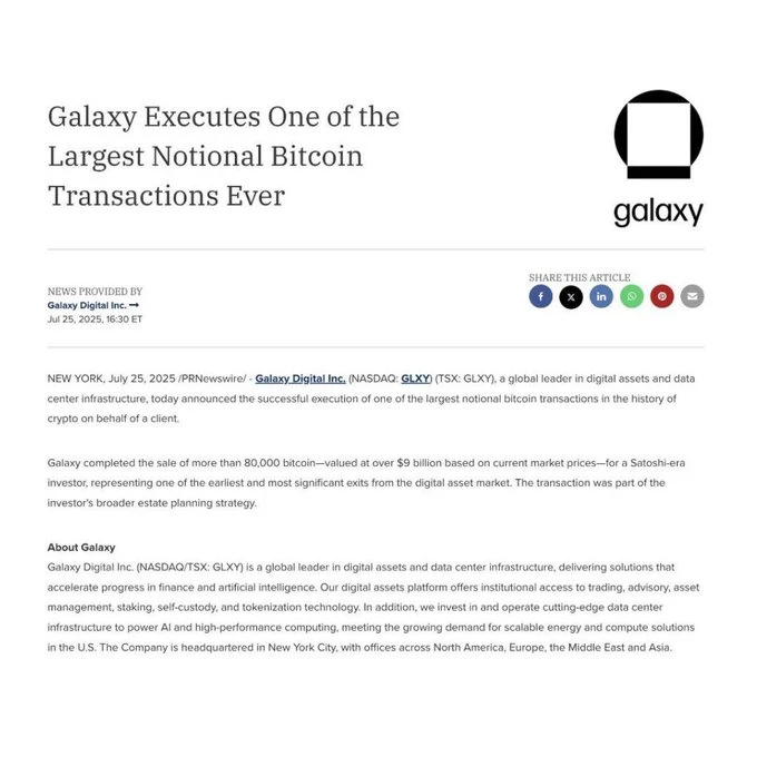 ā”ļøGalaxy confirms someone sold $9 billion worth of Bitcoin after buying it 14 years ago. Bitcoin absorbed that selling pressure like it was nothing.