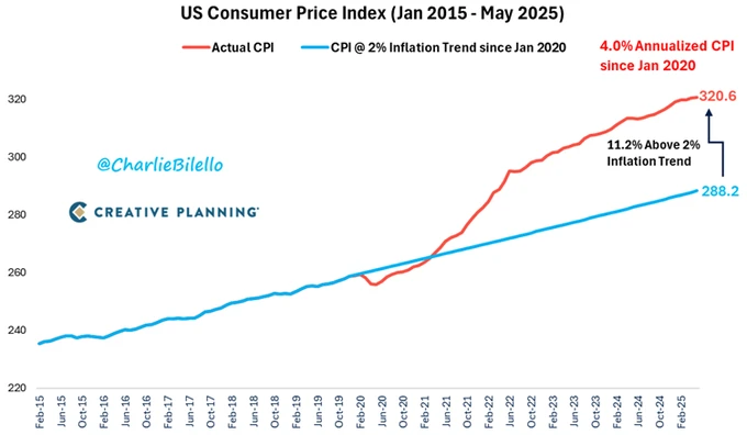 Charlie Bilello: 'Monetary policy should remain tight until the 11% additional inflation we've had since January 2020 above the 2% trendline is erased. There's no point in having an inflation target if you're not going to adhere to it. The Fed should not cut rates at all this year.'