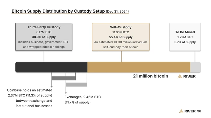 ➡️ River: 'An estimated 55% of all bitcoin is held in self-custody. If you’ve never tried, let today be the day when you learn how to do it! Start small and take your first step, check our guide in the post below: