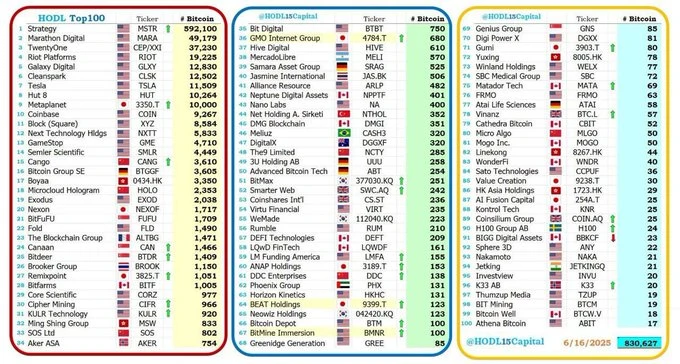 ➡️The BTC Treasury Holdings of Public Companies has surpassed 830,000 BTC worth over $82 BILLION! How long before we see over 1,000,000 BTC being held on company balance sheets?