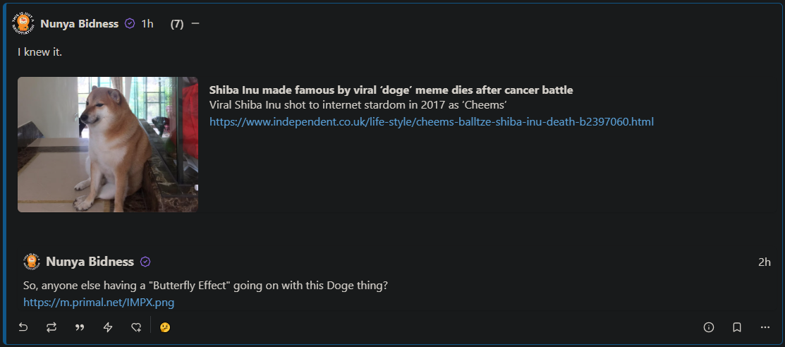 Yesterday's doge death broke quickly. I first saw it here. But, it was everywhere and you likely saw it too: