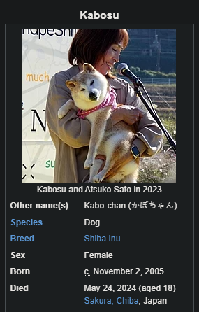 That article (www.independent.co.uk/life-style/cheems-balltze-shiba-inu-death-b2397060.html) spoke of the Doge dog dying back in 2023. This was a few months after the leukemia news broke. I had seen it news after all. "Okay, the pup hung on for several months. Good for pup. The doggo had a good life, brought a ton of joy to the world, was much loved." I thought.
