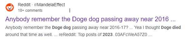 While scrolling, you might notice that last link. I noticed it. It read, "Anybody remember the Doge dog passing away near 2016 ..."