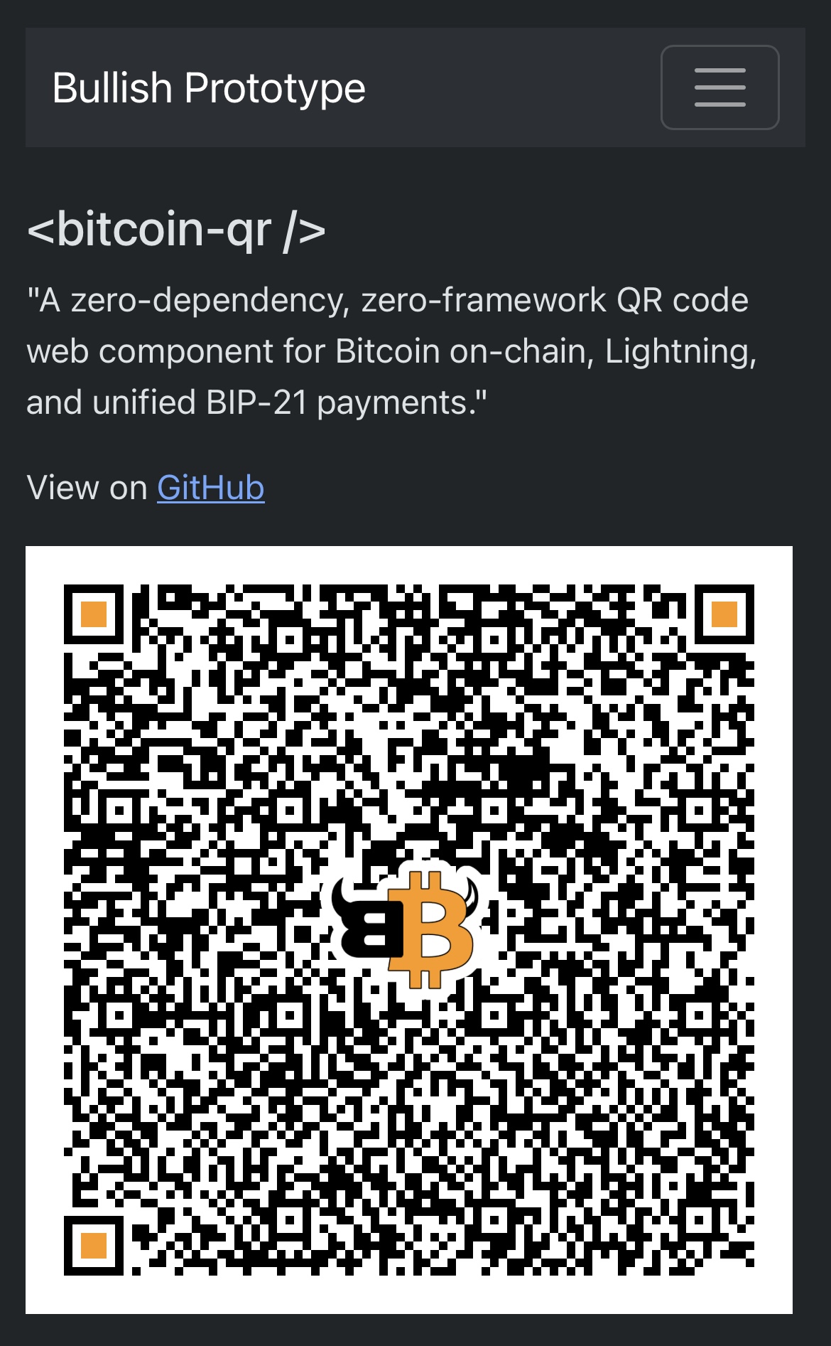 A zero-dependency, zero-framework QR code web component for Bitcoin on-chain, Lightning, and unified BIP-21 payments.