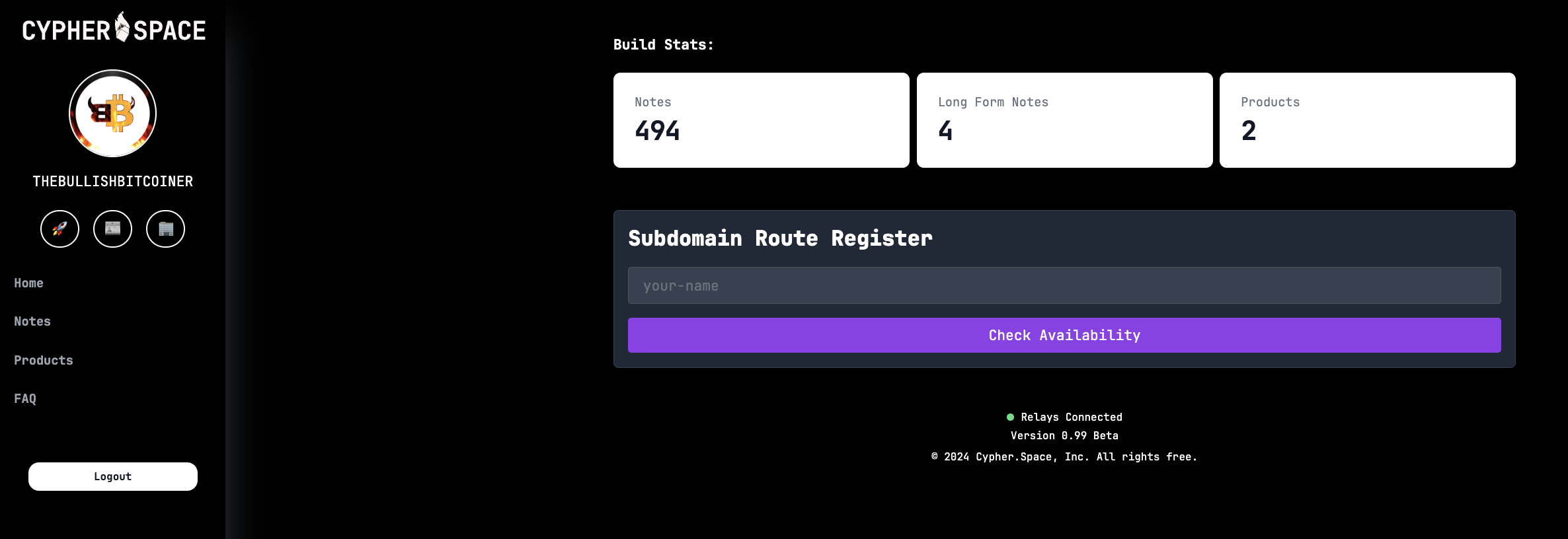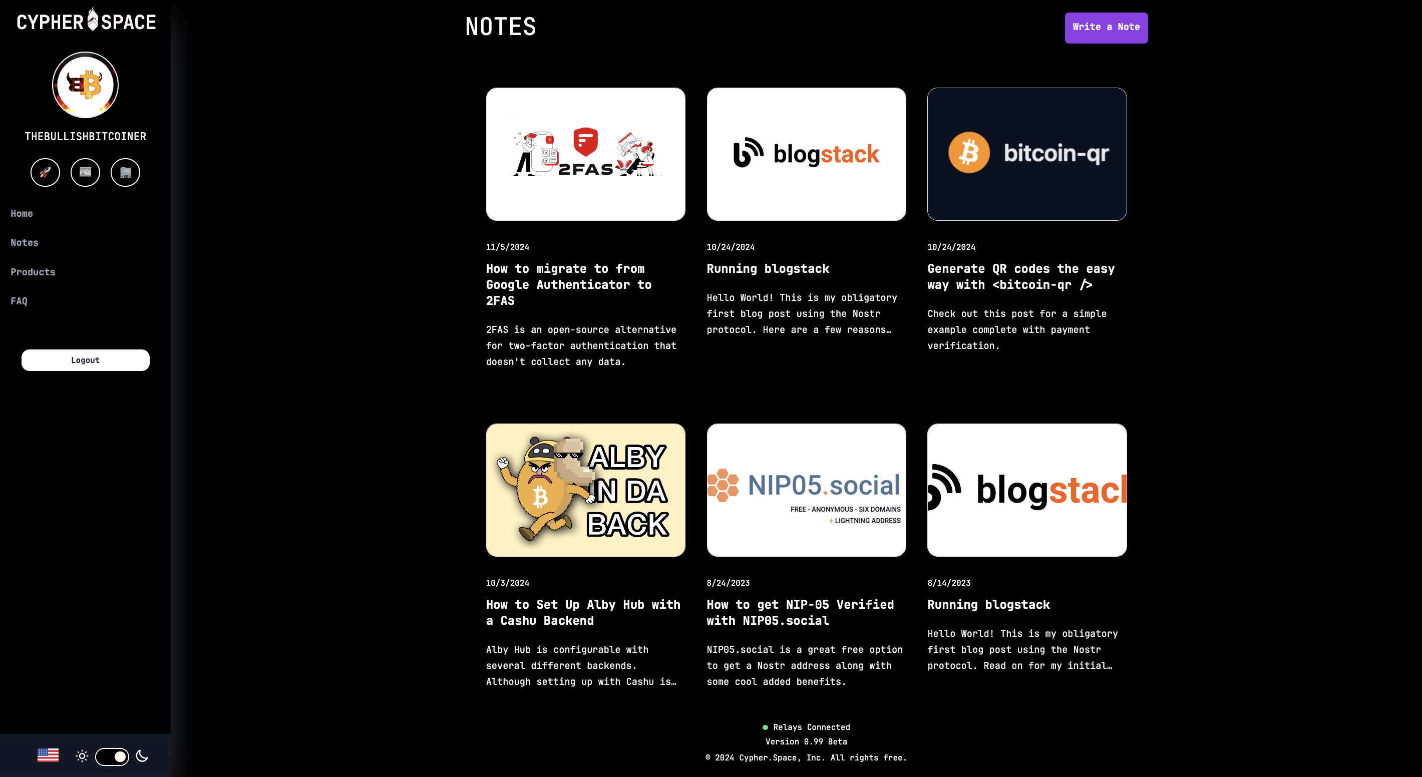 The dashboard gives an overview of the amount of notes posted (both short and long form) and products listed.