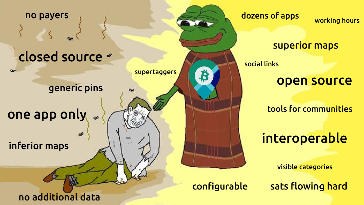 BTCmap is open source, built on OpenStreetMaps, open to both developers contributions but also for map taggers (called shadowy supertaggers). Anyone can contribute, even If you don't code. Anyone can verify merchants or add new merchants to the map. BTC Map team developed a neat system of verifications that just works better than anything before or any alternative maps today.