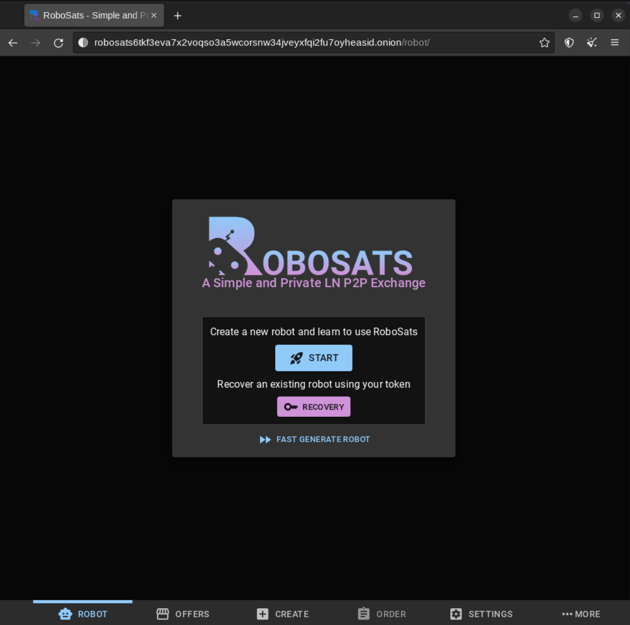 http://robosats6tkf3eva7x2voqso3a5wcorsnw34jveyxfqi2fu7oyheasid.onion