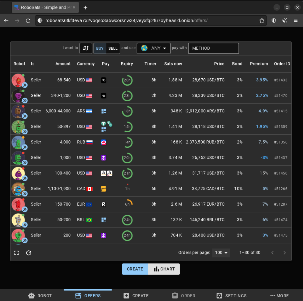 If none of the sell offers appeal to you, you can create a buy offer and set your own payment methods, amount of coin you wanna buy, and you also set your own expiration times both for the time to respond to a counterparty and for the listing to stay up. Note you still need to provide a deposit in sats, but you choose the percentage. You also choose the premium above market price you're happy with. Obviously, the higher this is, the more likely it is sellers will take your offer.