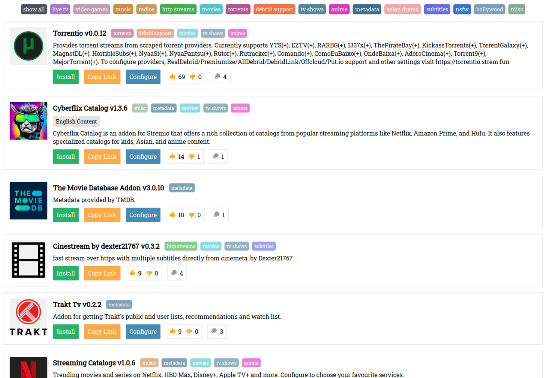 You can get not only sources but also catalogues that categorise the content for you. For example you can view the new releases on Netflix, HBO Max, Disney Plus, etc or you can go by top rated on IMDB, whatever you want.