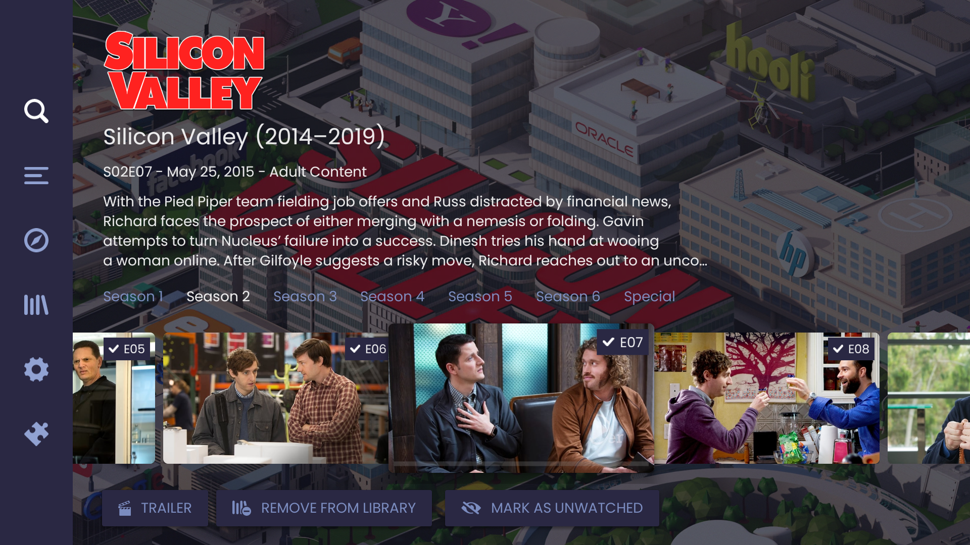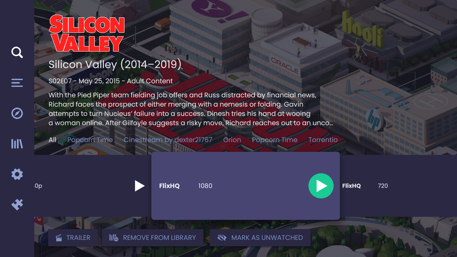Once you've found what you wanna watch the flow is simple. In my case I want to watch Silicon Valley. So I open it and it starts from where I left off: